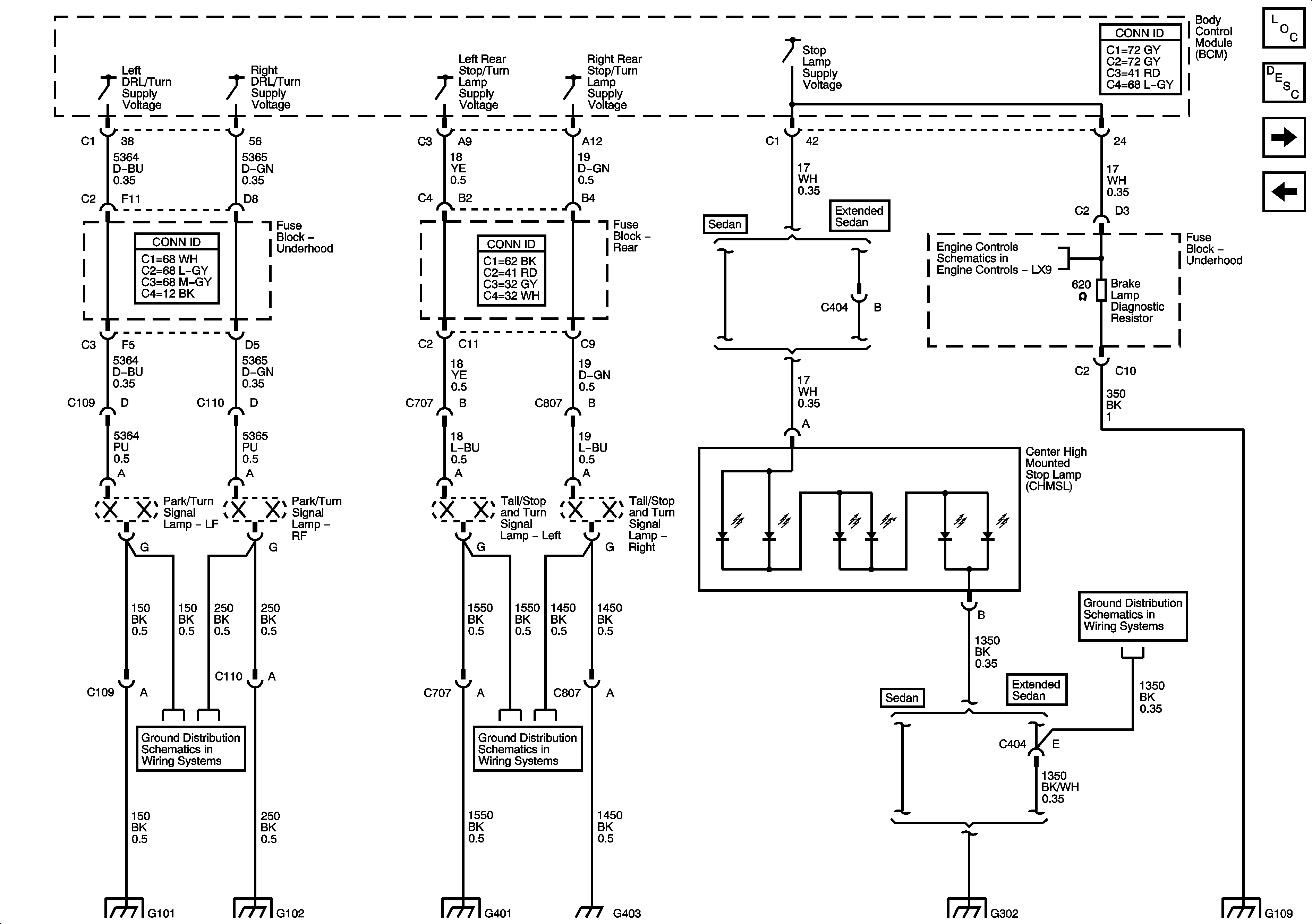 Brake Lamp Diagnostic Resistor, CHMSL, Grounds and Park/Turn Signal Lamps