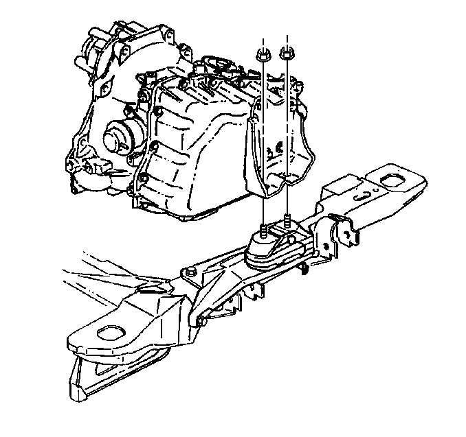 - Remove the transaxle bracket to transaxle mount upper nuts.