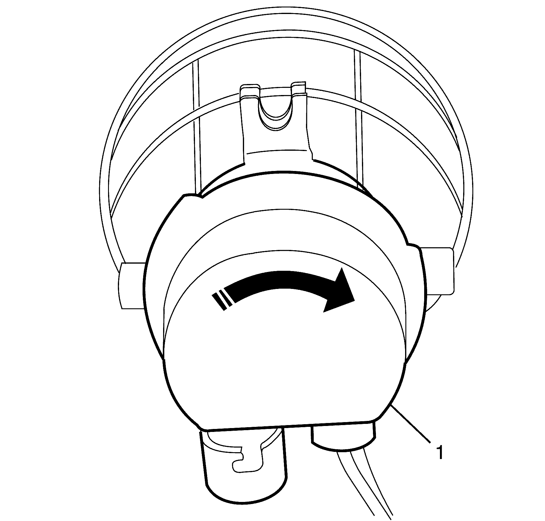 8. Remove the fog lamp bulb assembly (1) from the fog lamp assembly (2) by rotating the bulb assembly countercockwise.