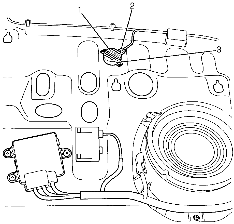 - Remove the rear object alarm retaining clips (3).