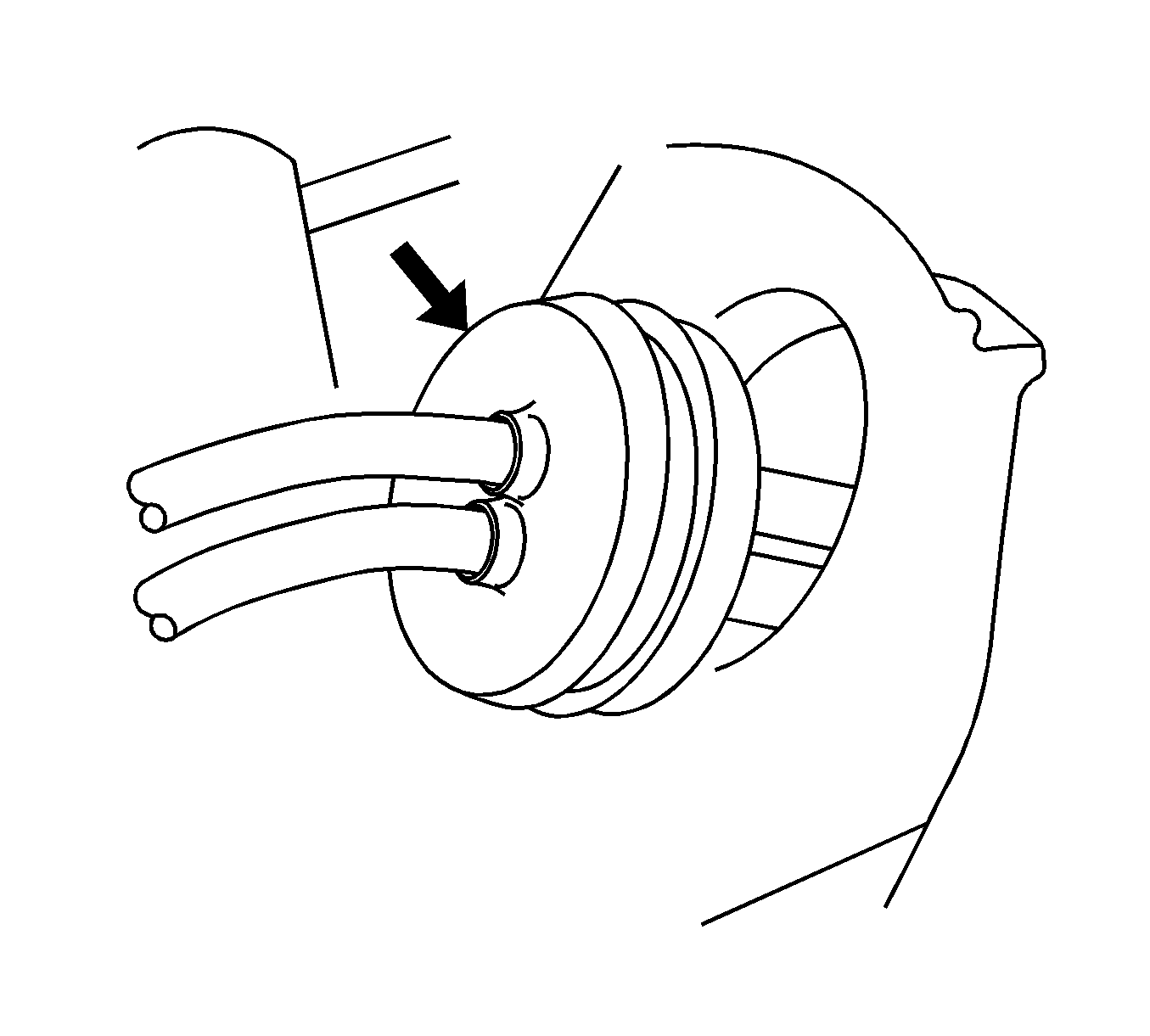 Note: Ensure that the shift control cable pass-through grommet is properly seated and the grommet arrow is pointing up.