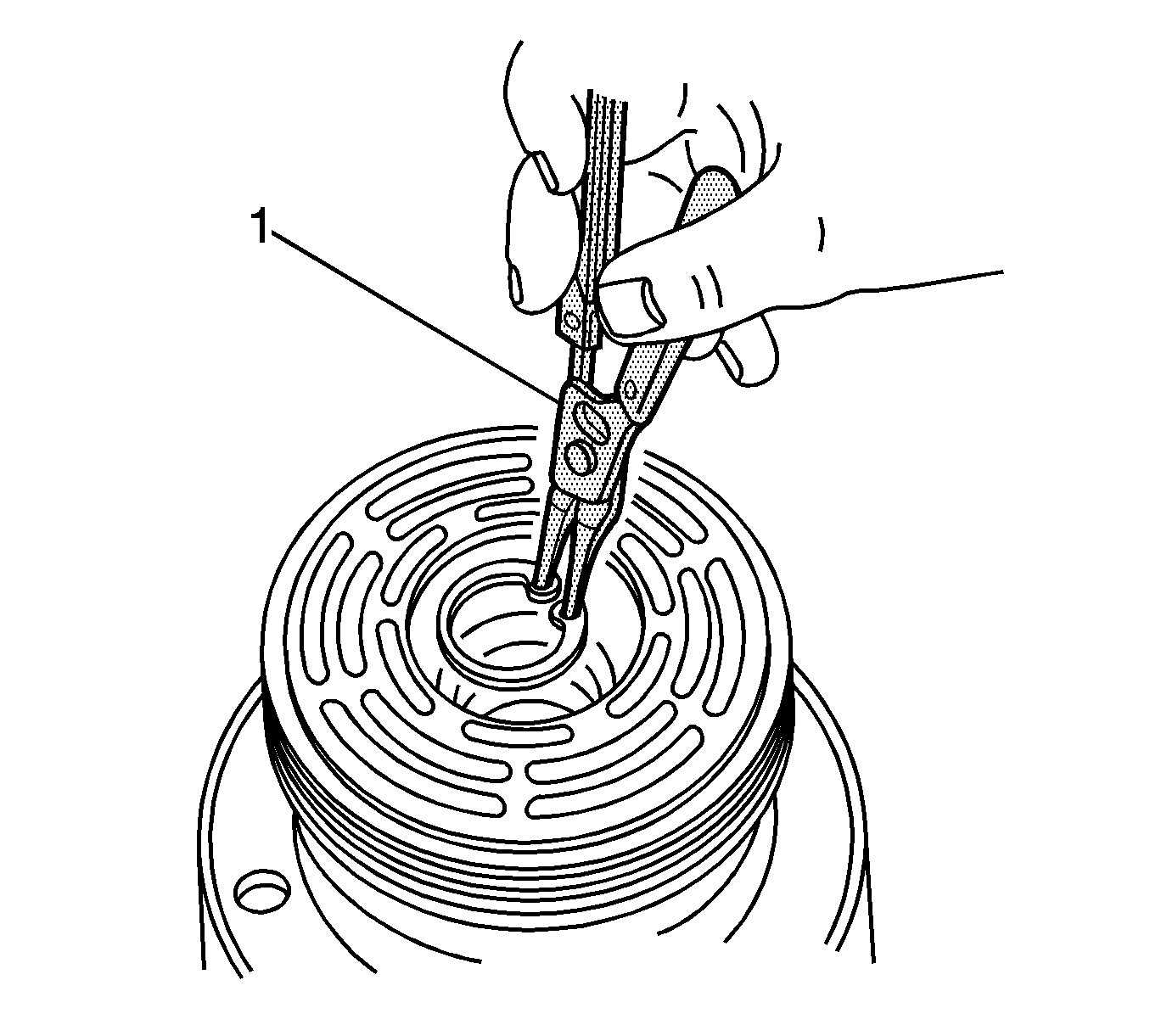 4. Remove the clutch drive plate and hub assembly from the compressor. Refer to Compressor Clutch Plate and Hub Assembly Removal .