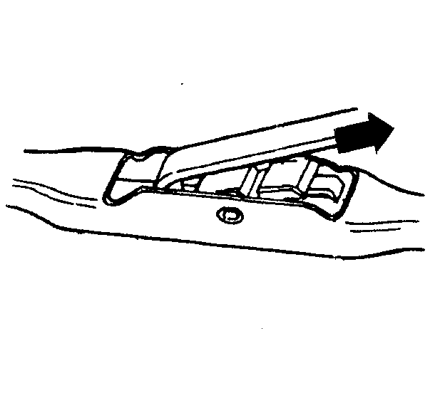 Push in the locking tab of the wiper blade clip and pull downward on the wiper arm blade.