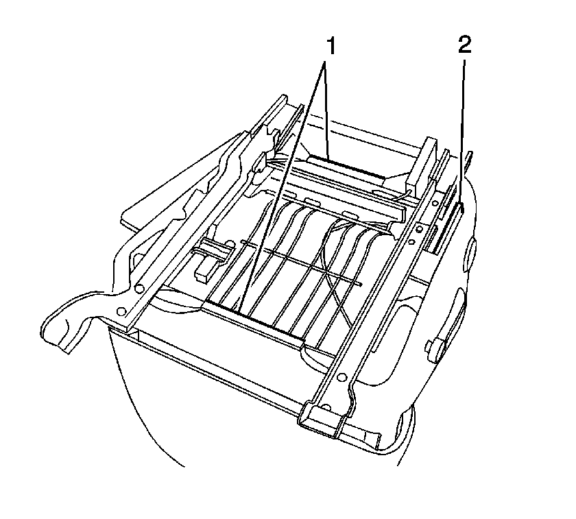 10. Remove the J-strips (1, 2) from to seat cushion frame.