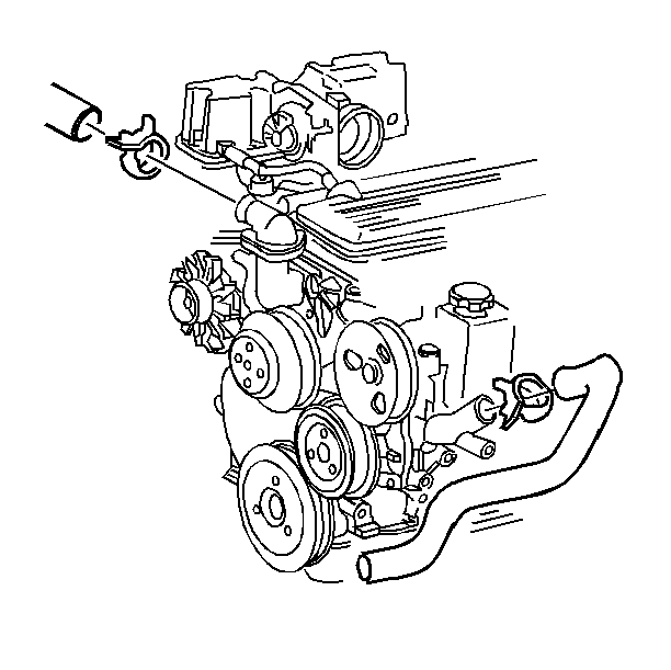 Important: The 4.3L uses a spring-type (constant tensioner) clamp at the radiator hose connections. Install the hoses on dry, unpainted surfaces for proper sealing.