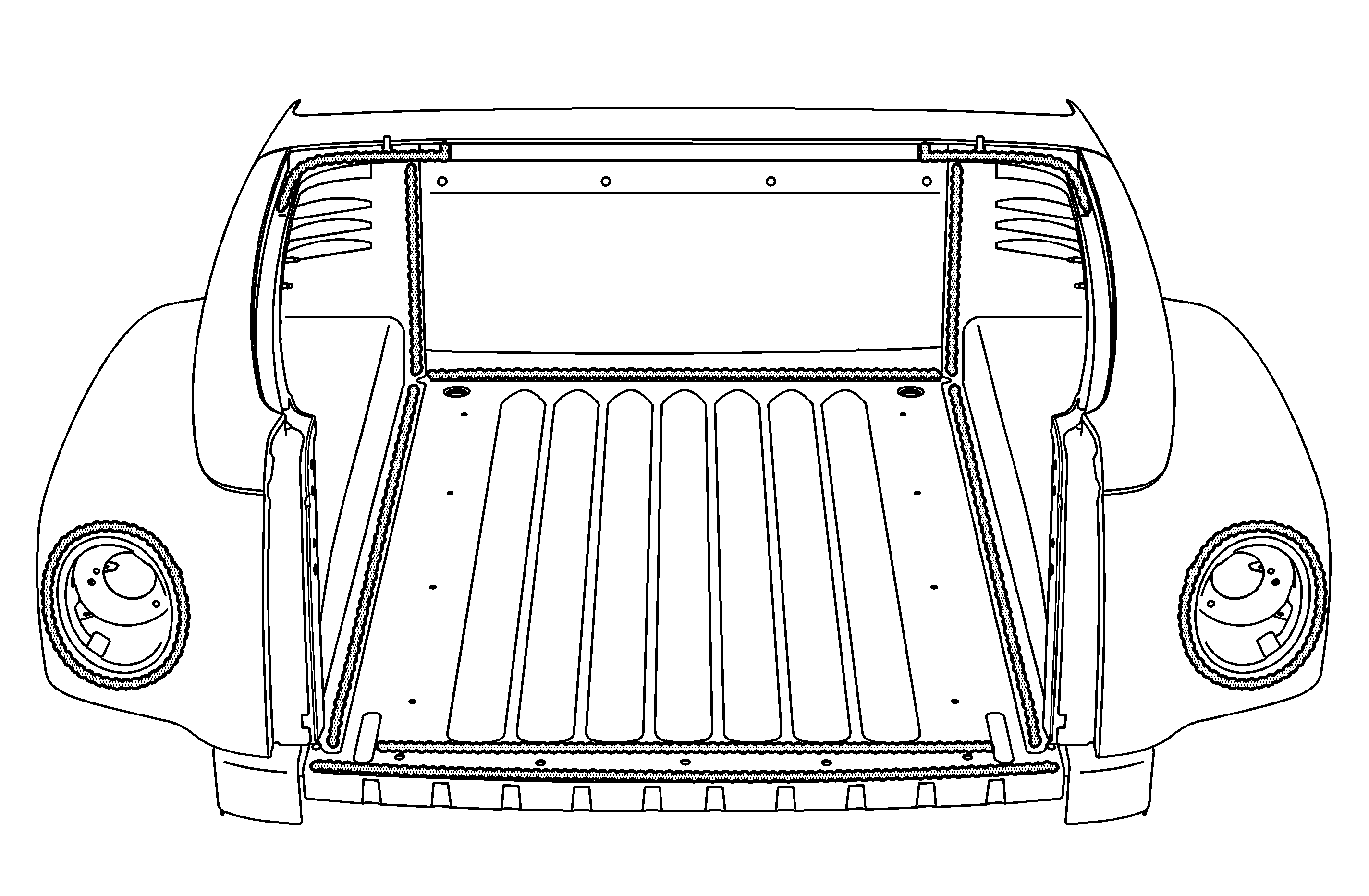 The shaded areas in this illustration indicate the location of the structural adhesive applied to these body parts.