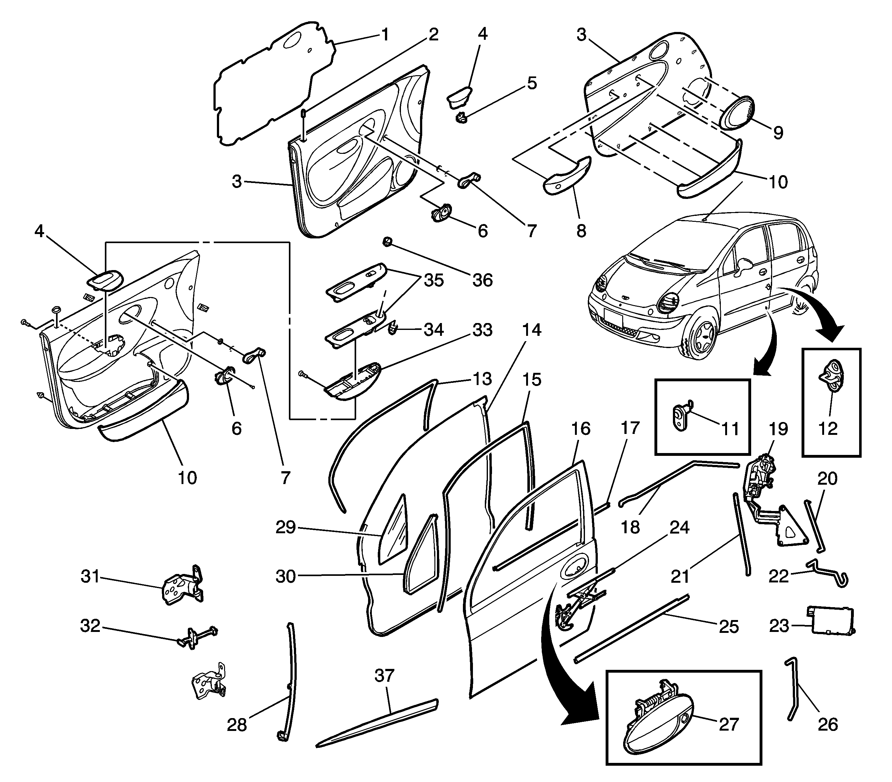 (24)Window Regulator and Motor (Driver Side Shown, Passenger Side Similar)