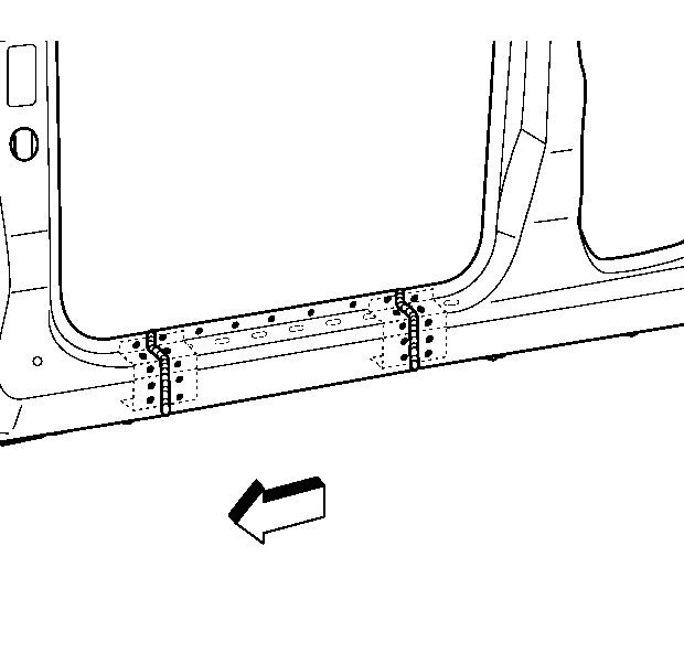 12. Fit the backing plate halfway into the sectioning joint, clamp and plug weld to the vehicle.