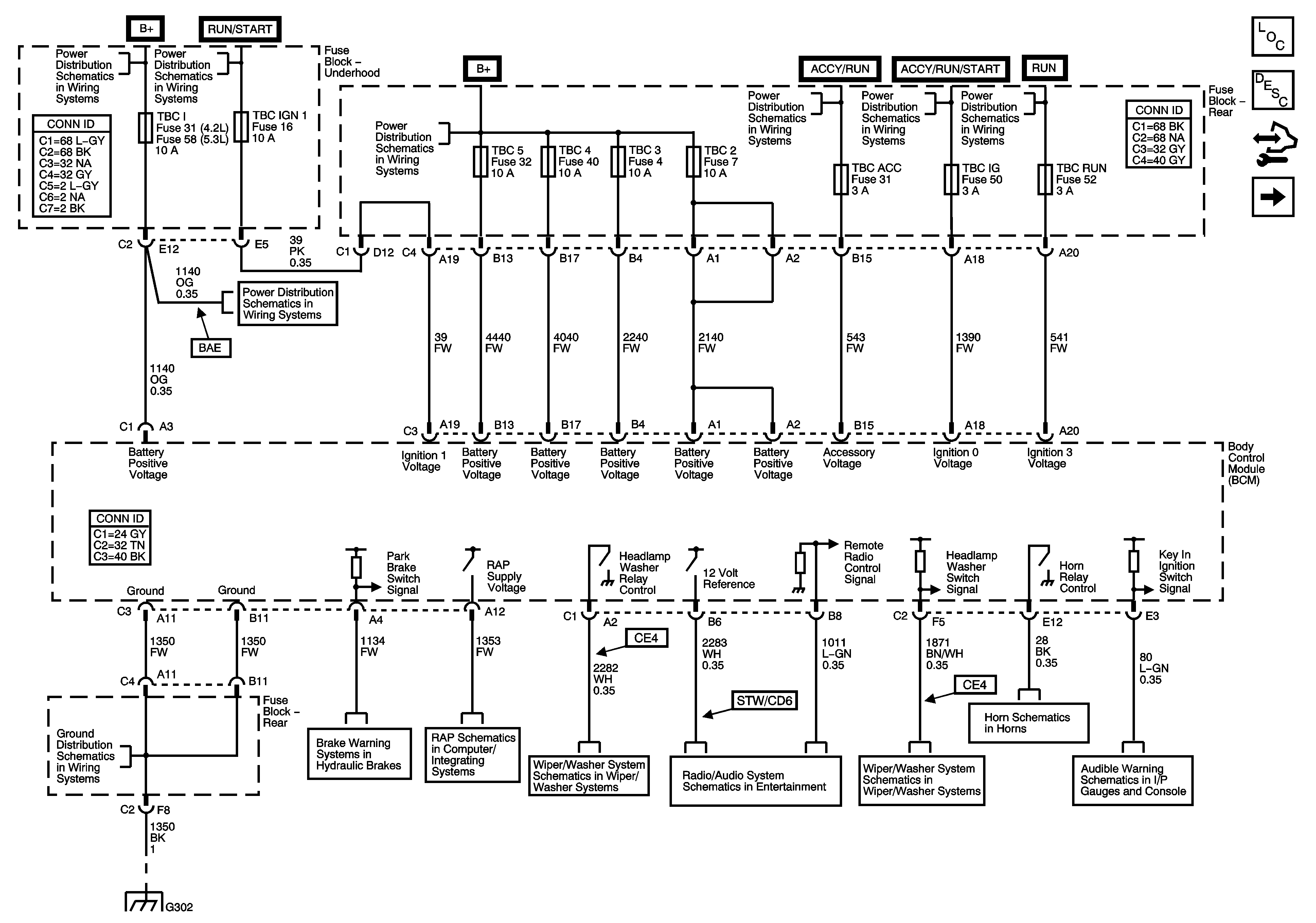 FRT WPR, IGN 0, RAIN, TBC ACC, TBC IG, and TCM Fuses