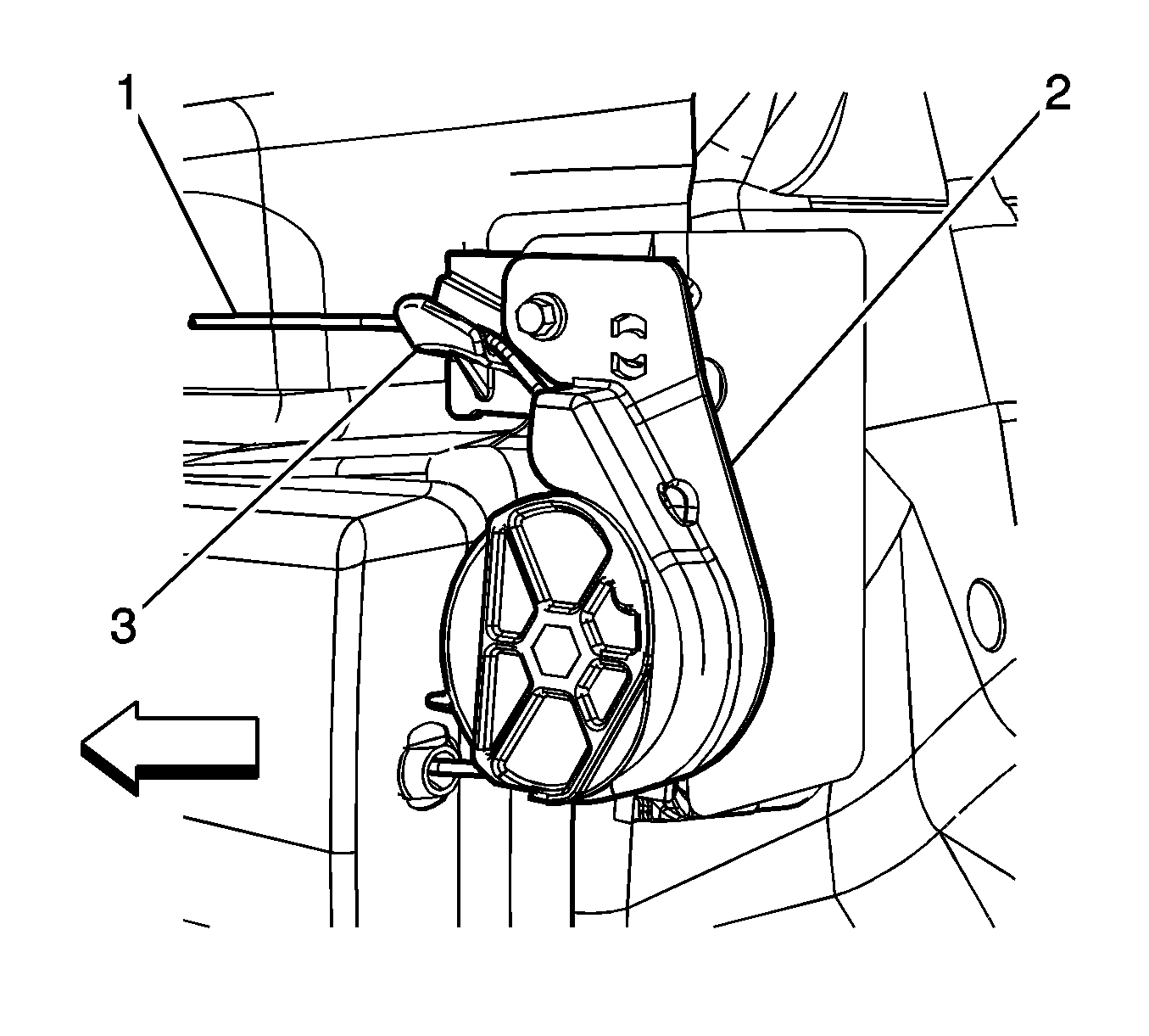 12. Position the rear pulley (3) to the rear inner quarter panel.