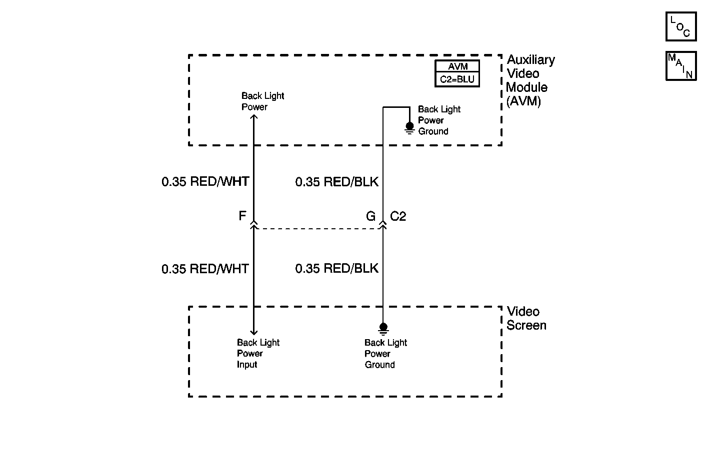 Check the power feed circuit and the ground circuit between the Auxiliary Video Module (AVM) and the video screen. Are these circuits in good condition? (no sign of open, short to ground, or shorted together) | -- | Go to Step 5 | Go to Step 4 | |||||||