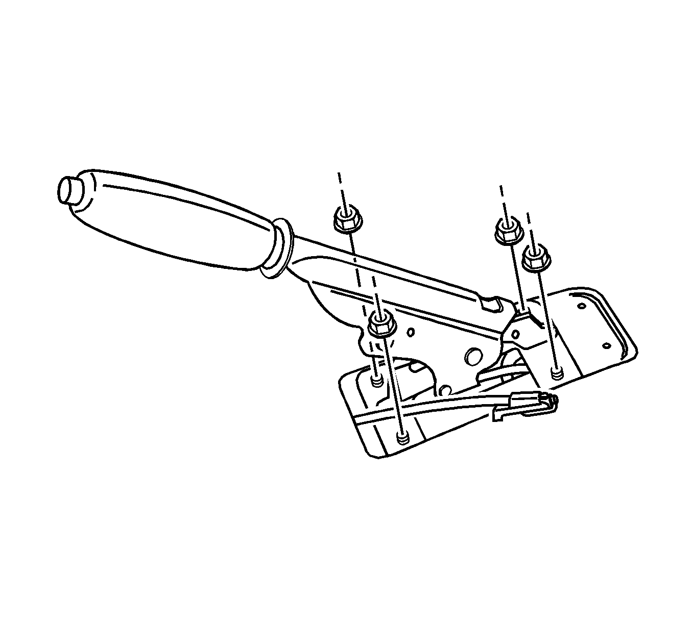 - Install the parking brake lever mounting nut which secure the complete parking brake lever assembly to the underbody.