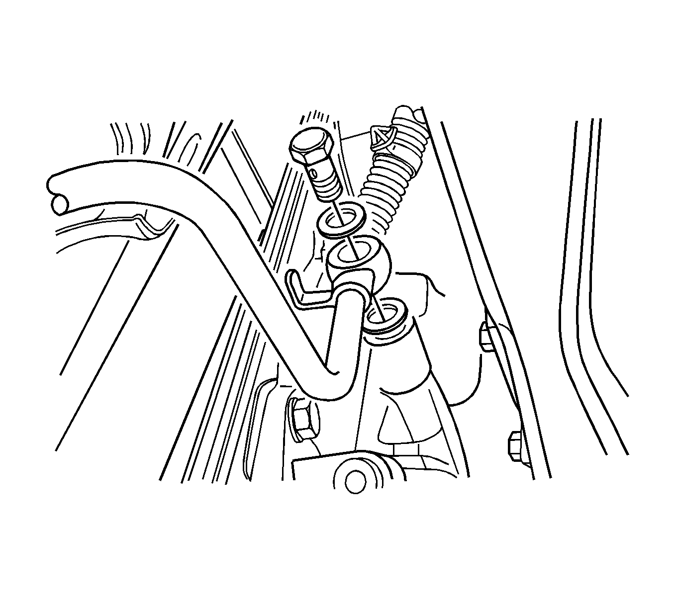 - Remove the oil cooler inlet pipe bolt from the lower left side of the radiator.
