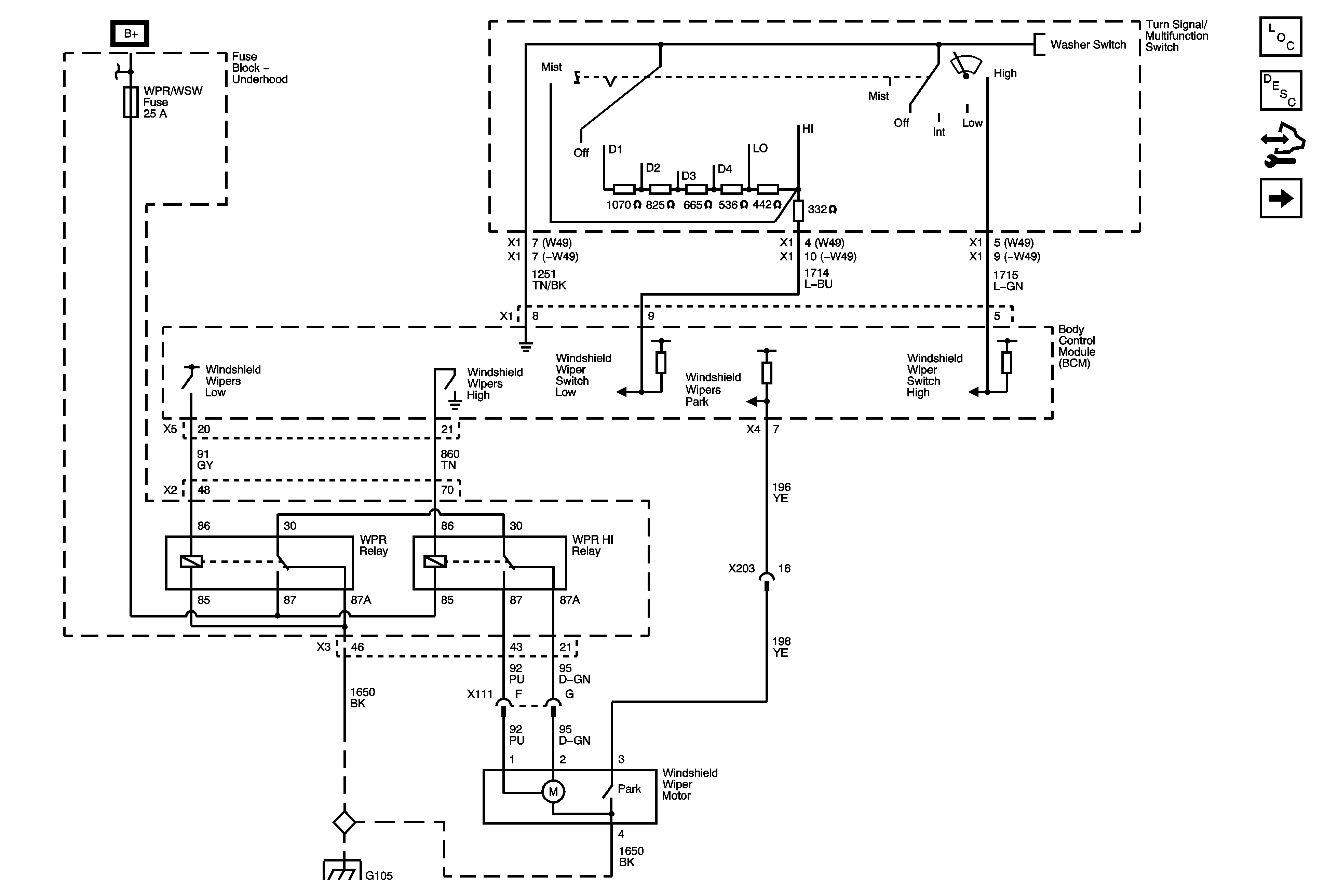 BATT 3, DRL, DRL 2, DR/LCK, FRT/WSW, HVAC, and REAR WIPER Fuses, PWR/WNDW Circuit Breaker