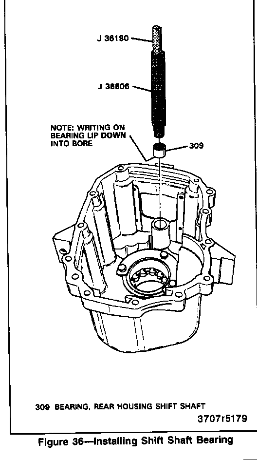 NOTICE: Excessive force will "peen" the shift shaft and damage the rear housing shift shaft bearing (309) causing increased shift effort.