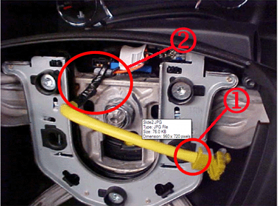 It will be necessary to make sure the protective tubing (yellow sleeve) on the new harness is pushed all way up to the SIR connector End point (See # 1 in photo above) . It will also be necessary to add electrical tape to the other end of the harness (See # 2 in photo above), to hold the protective tubing in place.
