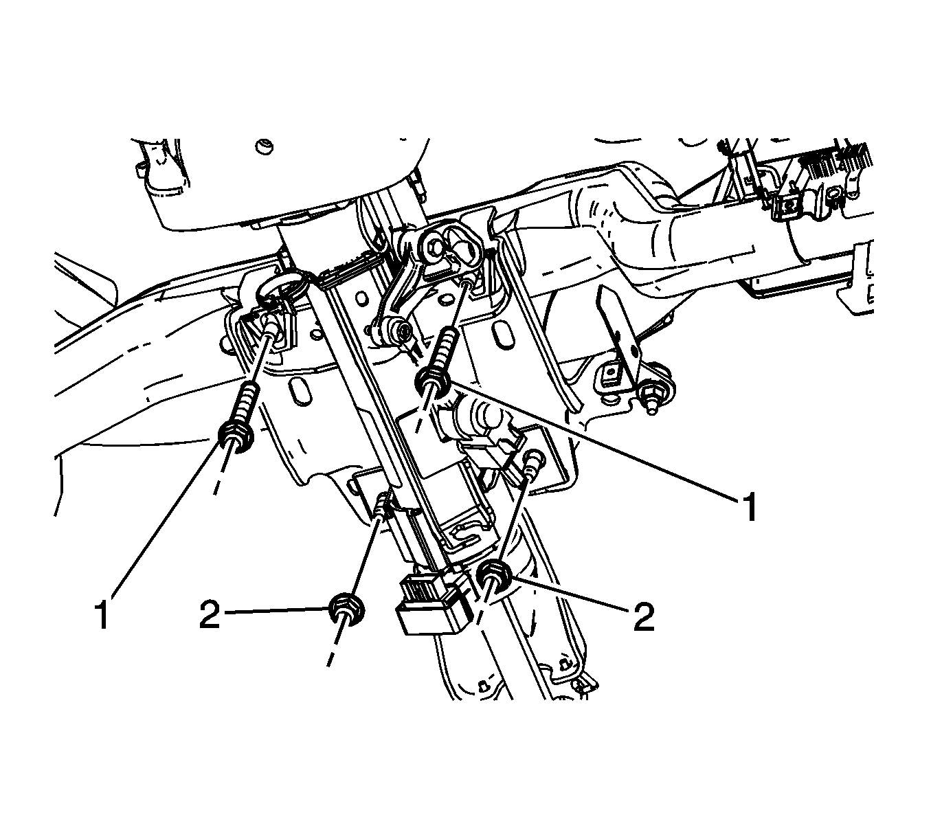 3. Install the 2 steering column bolts (1) and 2 steering column nuts (1) using the procedure shown above and tighten to 27 N·m (20 lb ft).