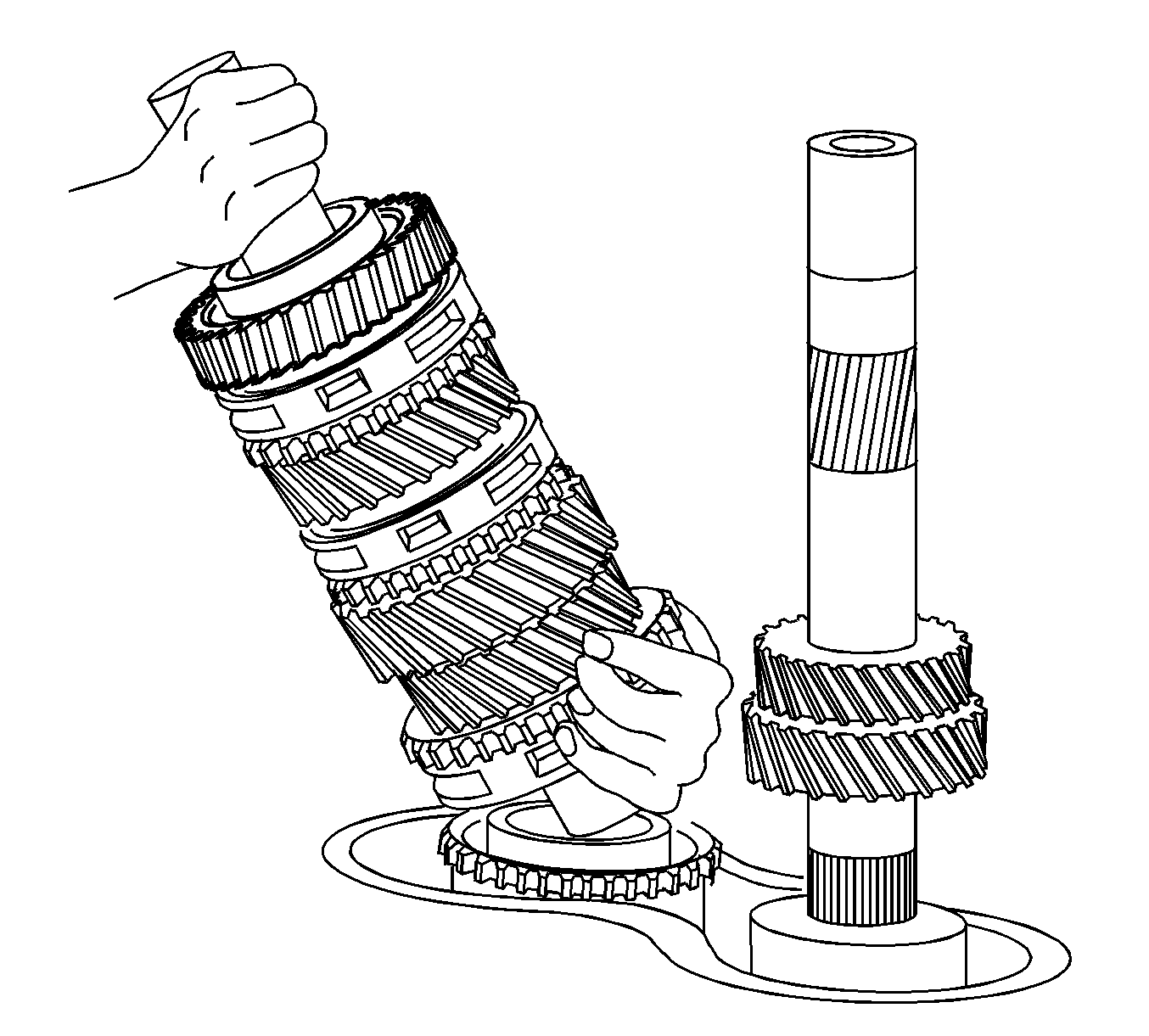 25. When removing the 5th speed gear, the taper bearings, bushing, roller cage, and reverse synchronizer assembly will also come out.