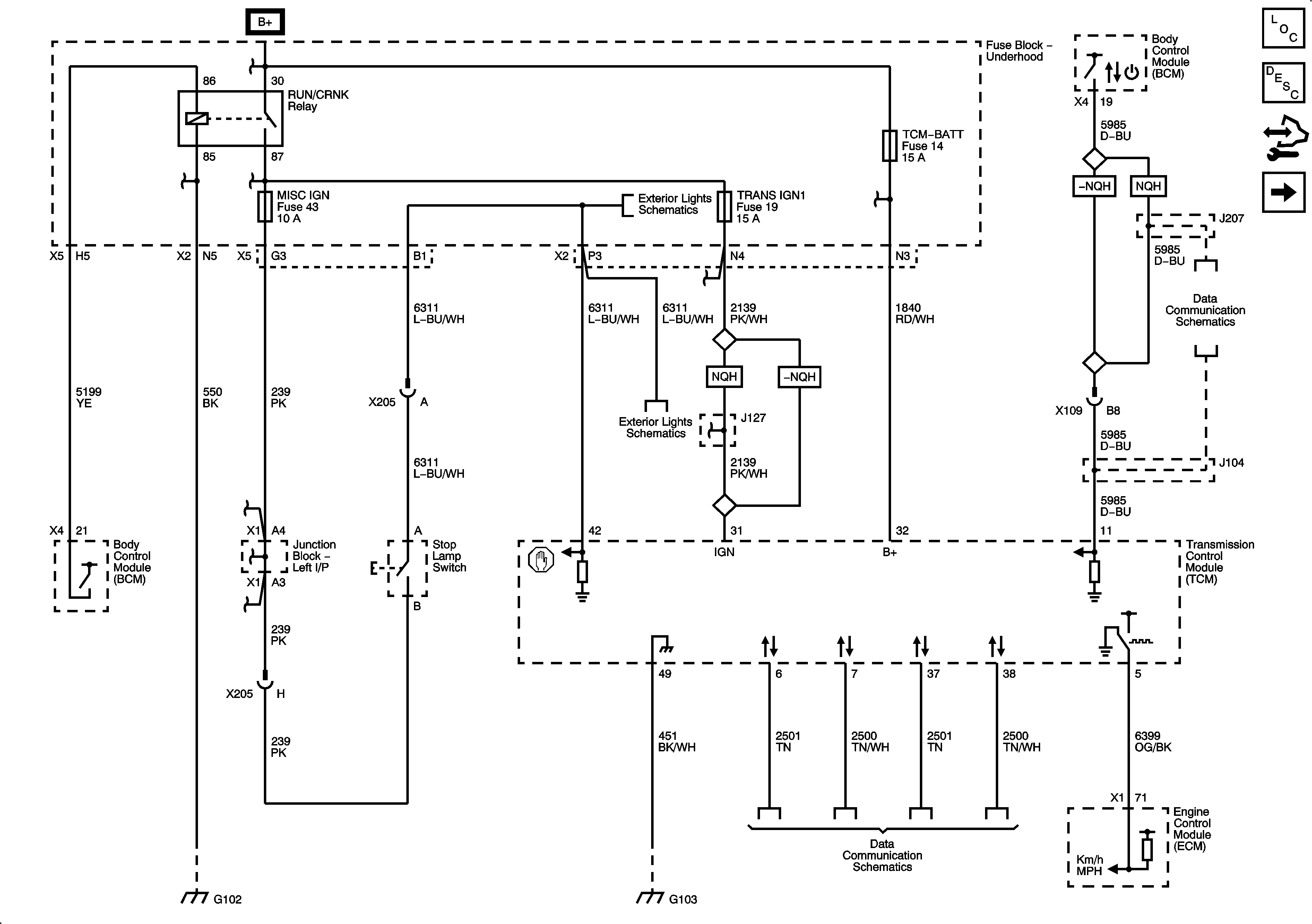 RUN/CRANK Bus - ECM-IGN and TRANS IGN 1 Fuses