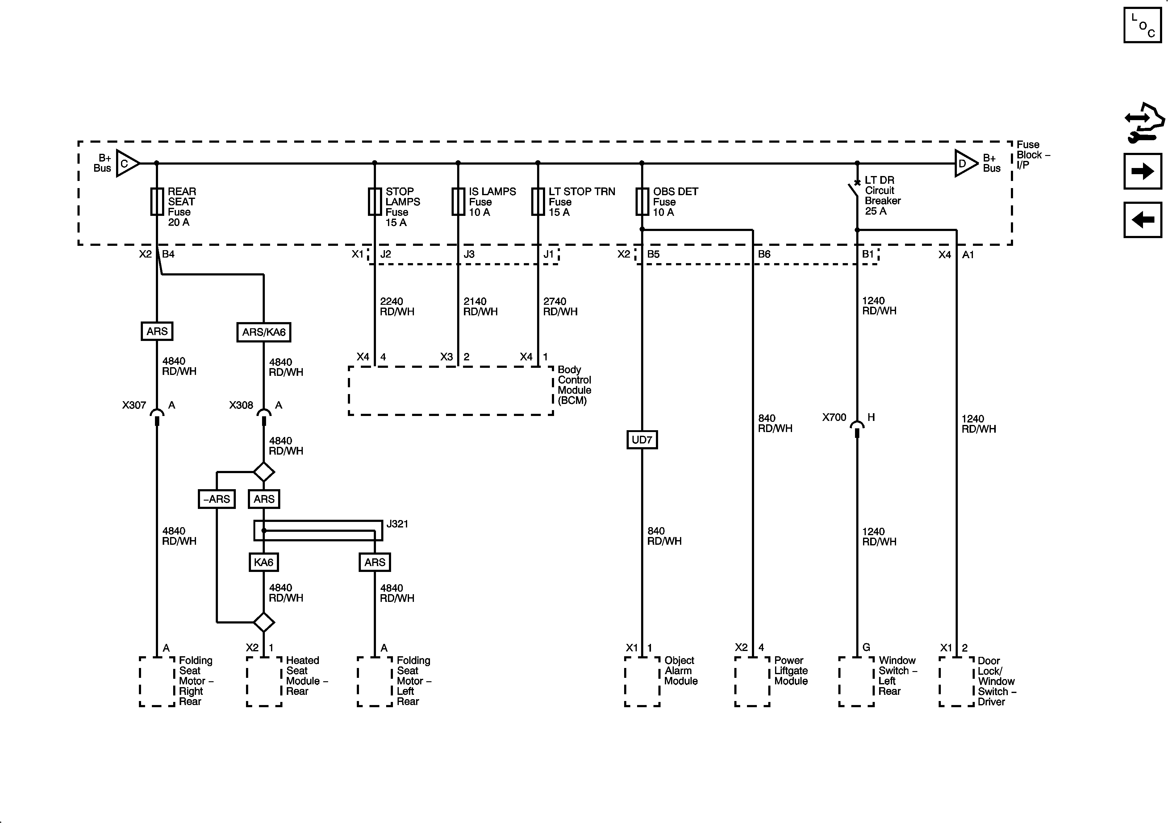 🢒 IS LAMPS, LT STOP TRN, OBS DET, REAR SEAT, and STOP LAMPS Fuses and LT DR Circuit Breaker