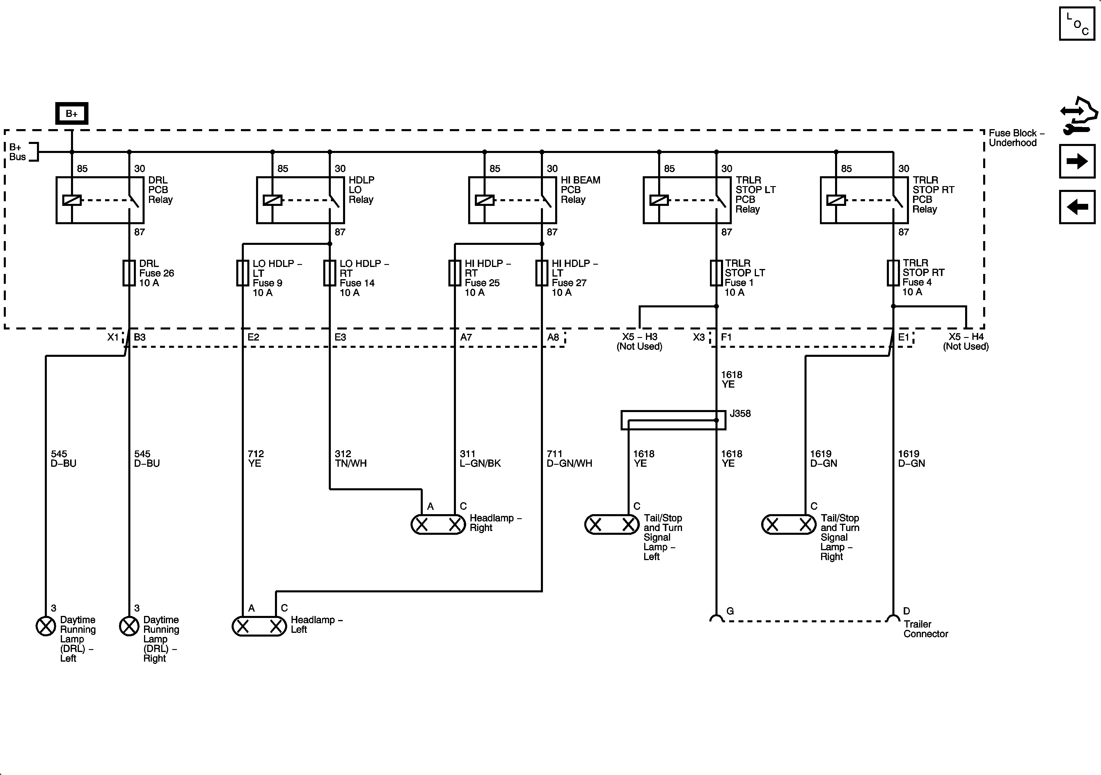 DRL, LO HDLP-LT, LO HDLP-RT, HI HDLP-RT, HI HDLP-LT, TRLR STOP LT and TRLR STOP RT Fuses