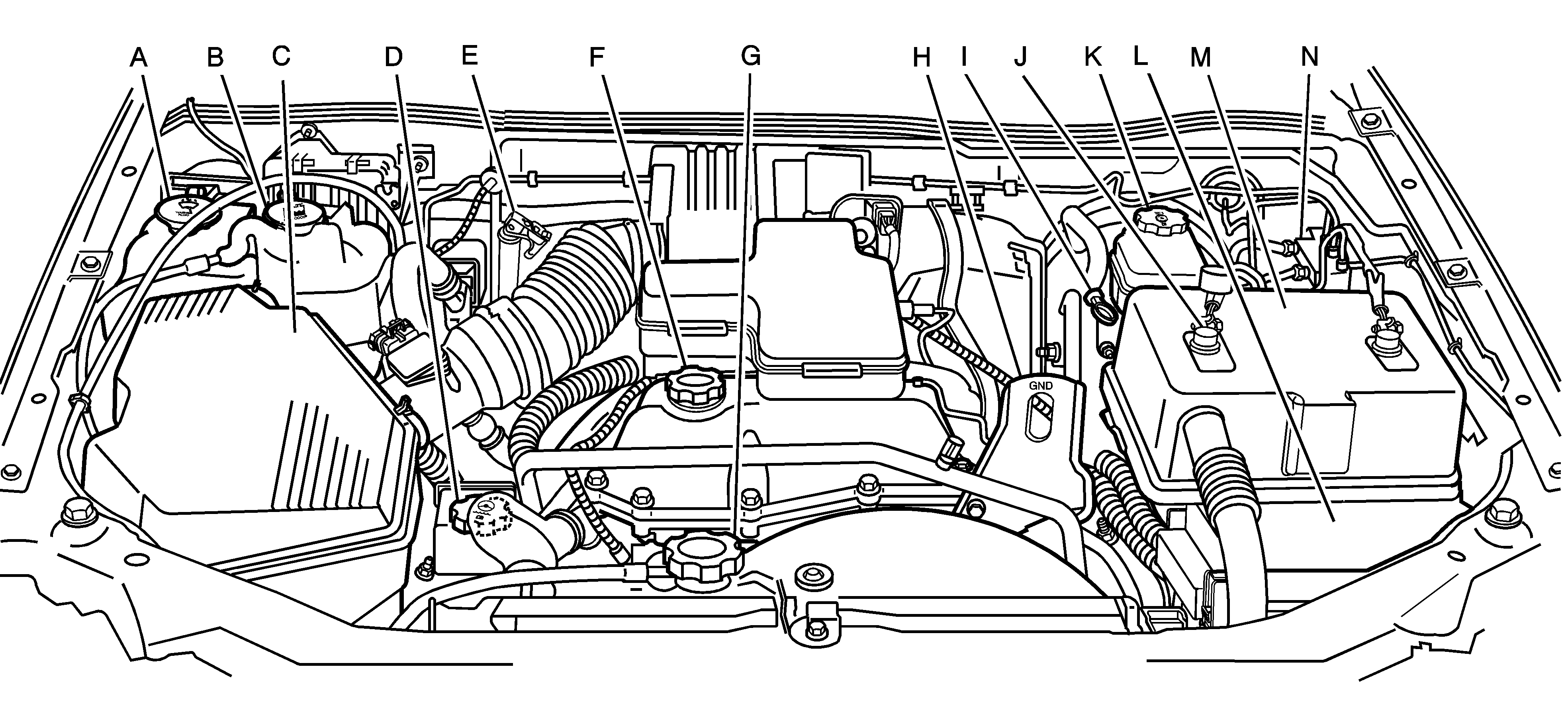 1. Windshield Washer Fluid Reservoir. See "Adding Washer Fluid" under Windshield Washer Fluid .