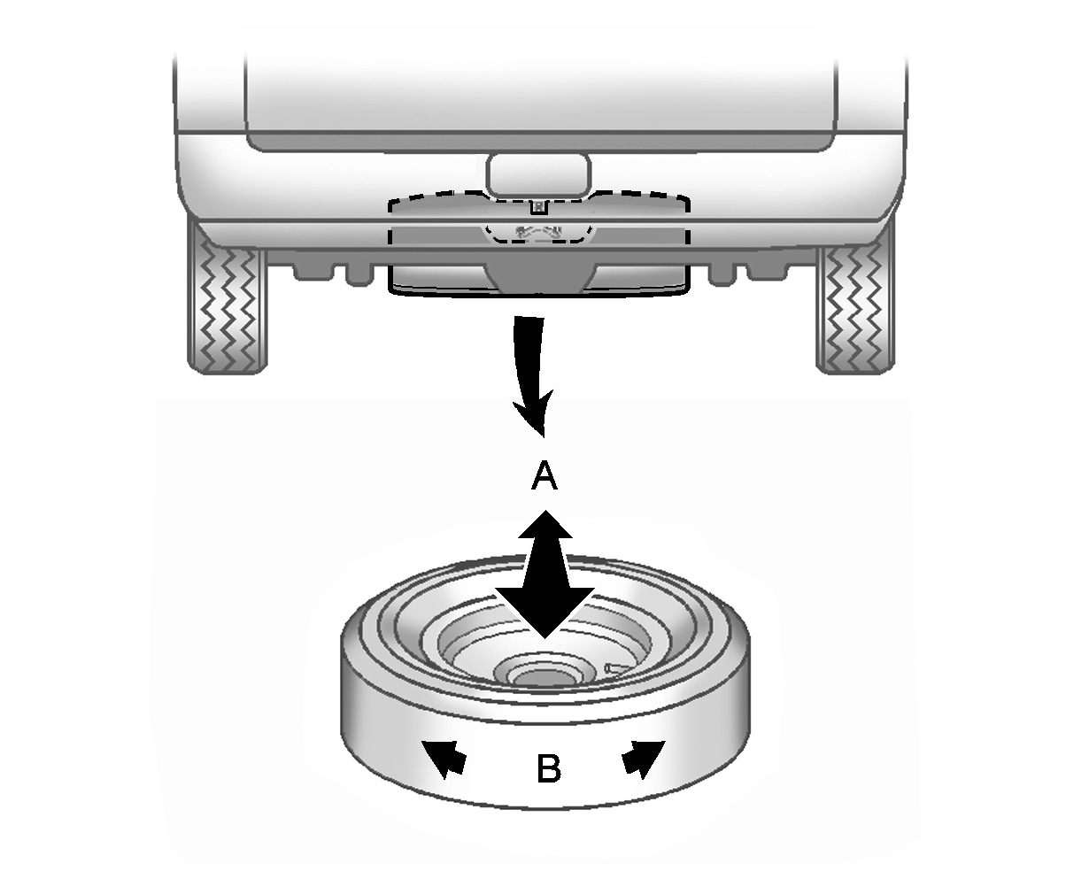 - Raise the tire part upward. Make sure the tire/wheel retainer (B)