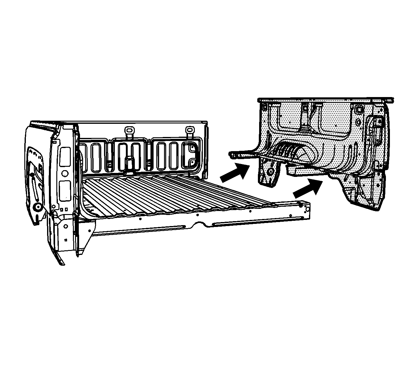 Locate and drill out all remaining spot welds including along the front bed panel.