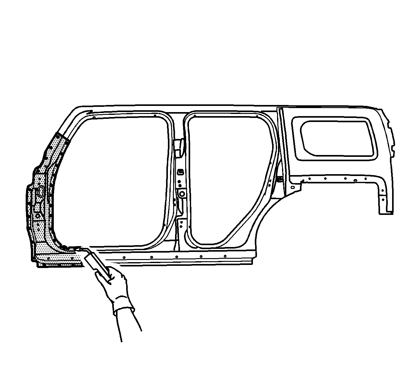 Note: Do NOT damage any inner panels or reinforcements.