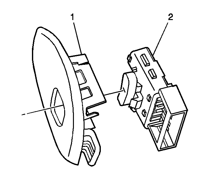Press the power door lock switch (2) into the switch bezel (1) until locking tabs are fully engaged.
