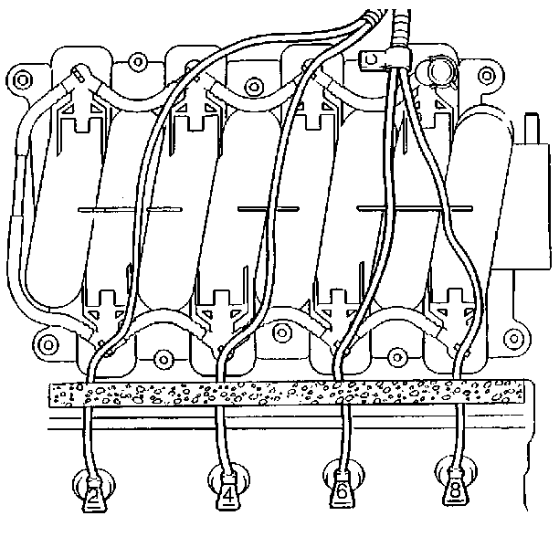 | - | 110 mm (4.5 in) on the number 6 and 8 spark plug wire |