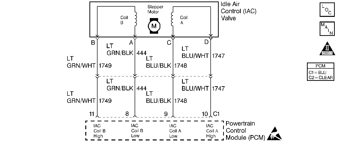6 | Check for poor terminal contact at the IAC harness connector. Was a problem found and repaired? | -- | Go to Powertrain Control Module Diagnosis for Verify Repair | |||||||||