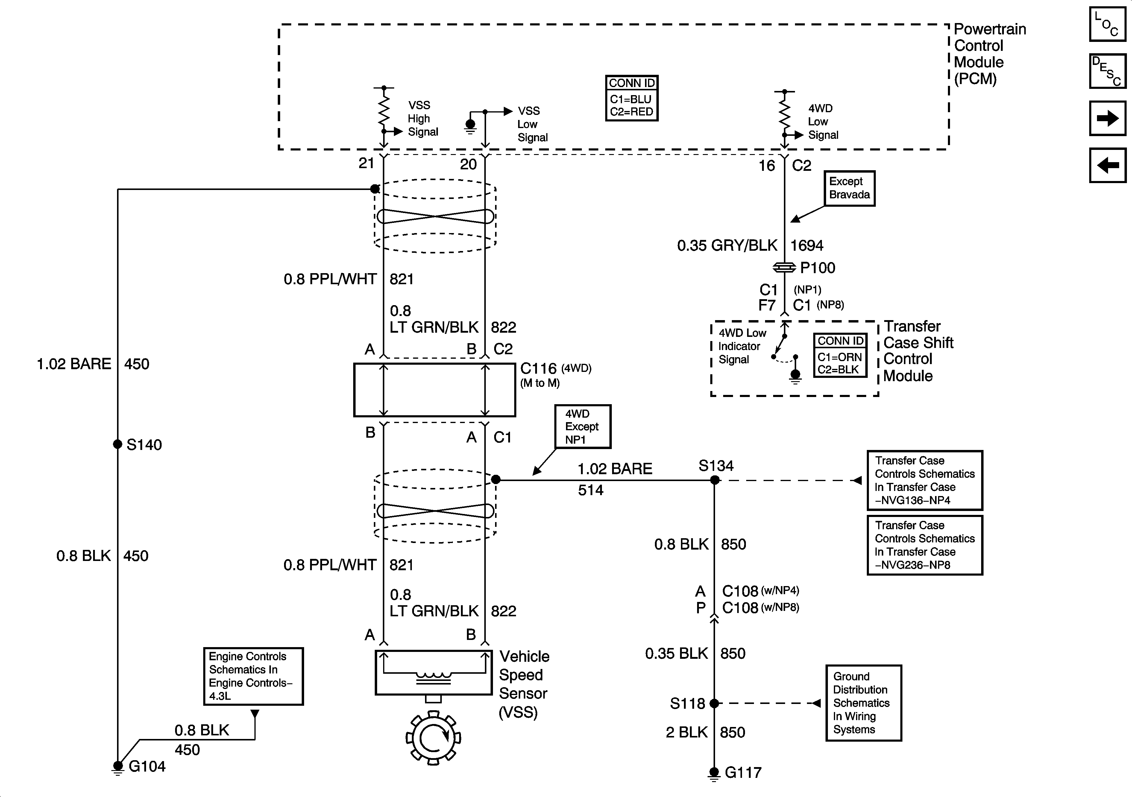 VSS Inputs, 4WD Low Indicator Signal (4.3L)