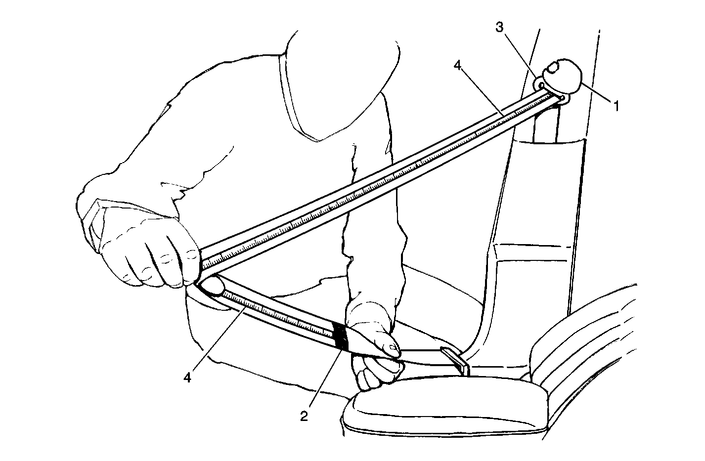 In addition, these new belts have a greater retraction force and, therefore, may be less comfortable to some customers. To avoid any customer dissatisfaction, please inform the customer before replacing the belts. If the customer is commenting about the belt material length not being long enough, advise them that the material on these new belts is approximately 200mm (8 inches) longer. If more then this is needed, a seat belt extender should be considered. Extenders can be found in Group 16.714 of the appropriate GMSPO Parts Catalog.To determine what length shoulder belt is currently installed in the vehicle, perform the following procedure.