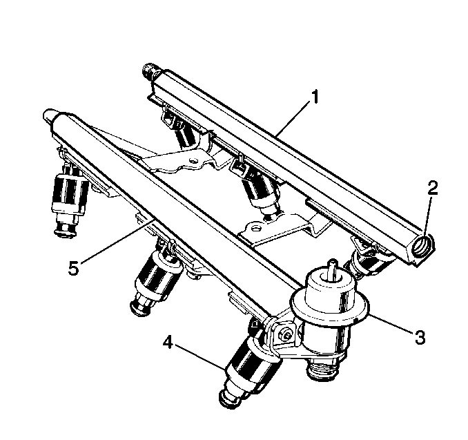 Fuel is delivered to the fuel inlet tube (2) of the fuel rail by the fuel pipes. The fuel then goes through the fuel rail to the fuel pressure regulator. The fuel pressure regulator maintains a constant fuel pressure at the fuel injectors. Remaining fuel is then returned to the fuel tank.