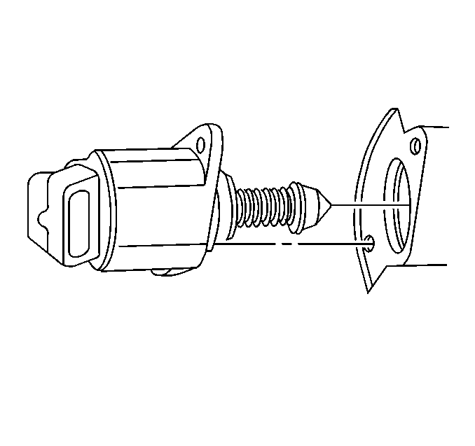 Notice: The IAC valve may be damaged if installed with the cone (pintle) extended more than 28 mm (1-1/8 in). Measure the distance that the valve is extended before installing a new valve. The distance from the idle air control valve motor housing to the end of the idle air control valve pintle should be less than 28 mm (1-1/8 in). Manually compress the pintle until the extension is less than 28 mm (1-1/8 in).