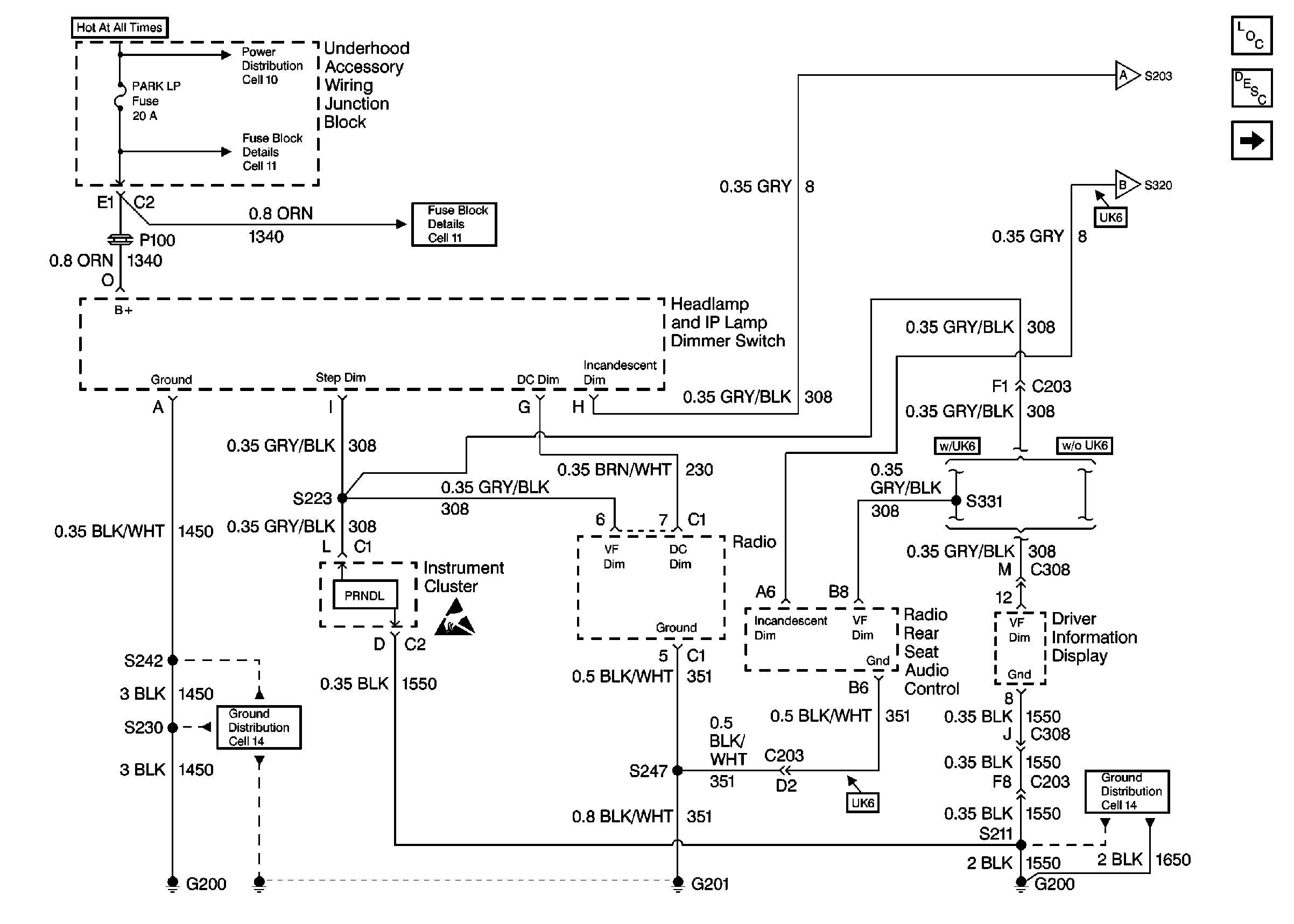 Cell 117: Headlamp and IP Lamp Dimmer Switch, Driver Information Display
