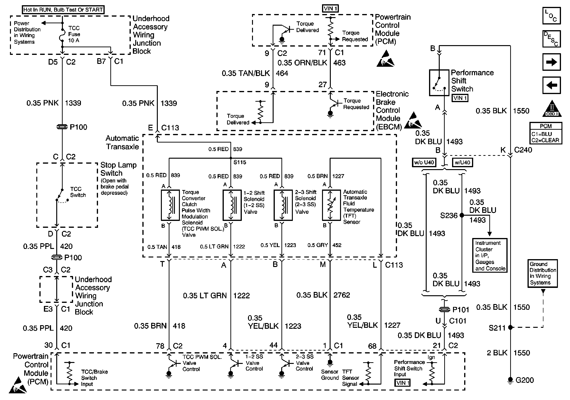 Automatic Transaxle, EBCM, Performance Shift Switch and Stop Lamp Switch