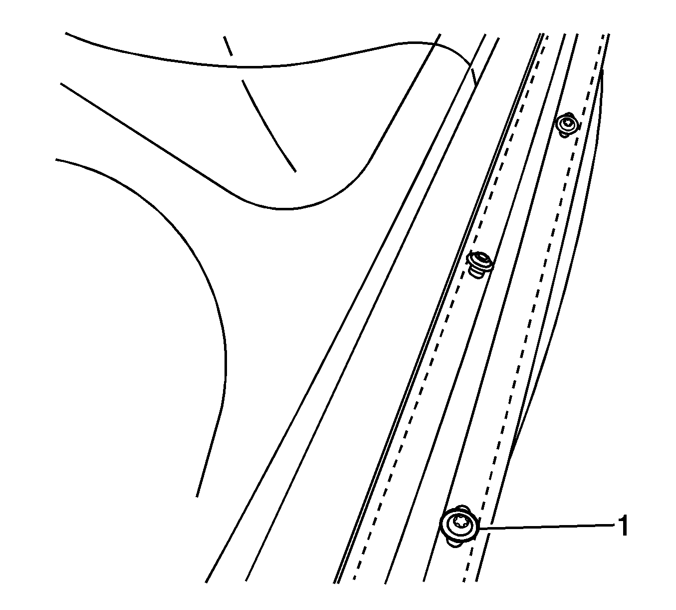 Note: Use the short rivet provided in the installation kit for this location. The longer rivets will not allow the rear fabric retainers to be installed.