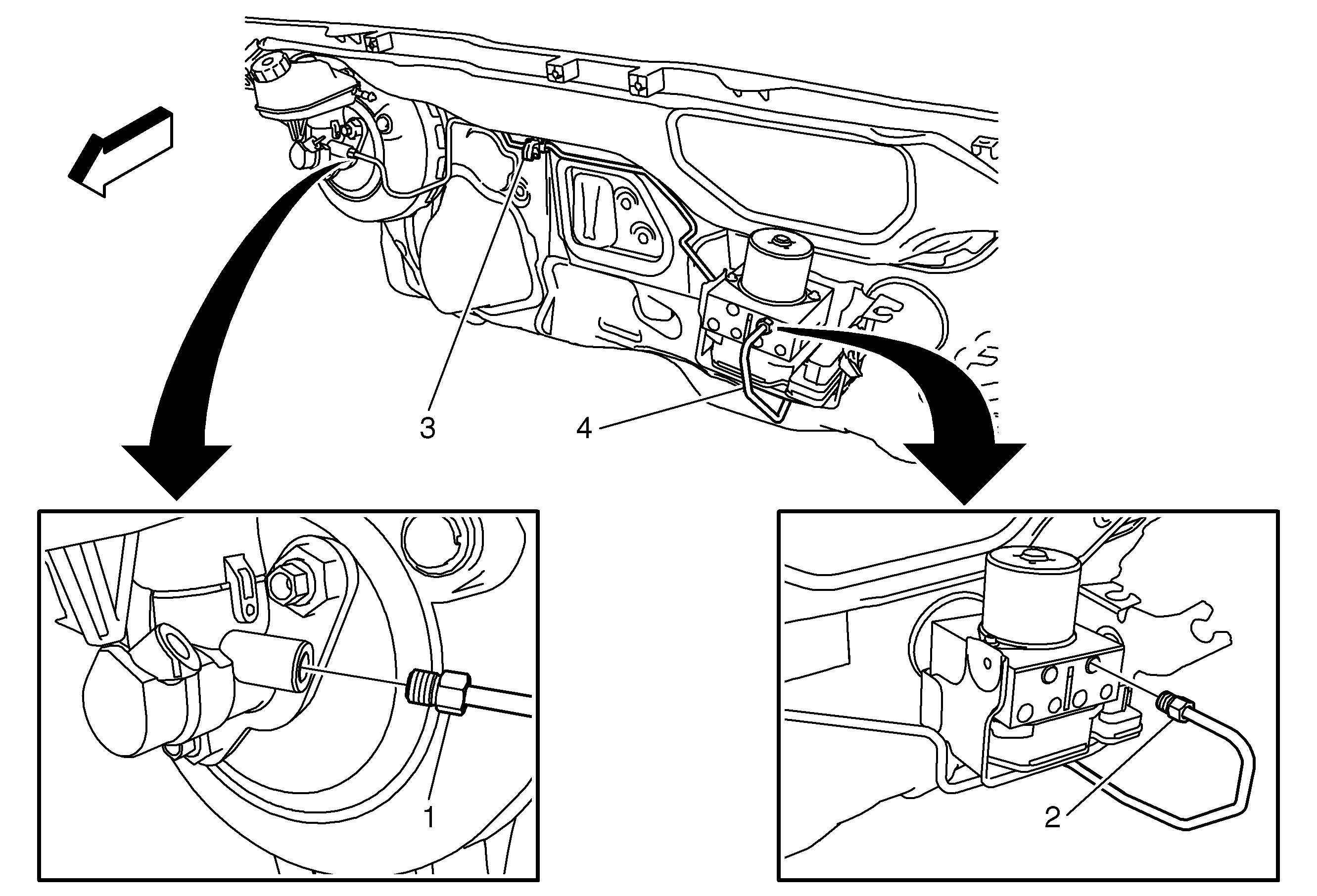 1 | Brake Pipe Fitting Caution: Refer to Fastener Caution in the Preface section. ProcedureCap the brake pipe fitting to prevent brake fluid loss and contamination. Tighten |