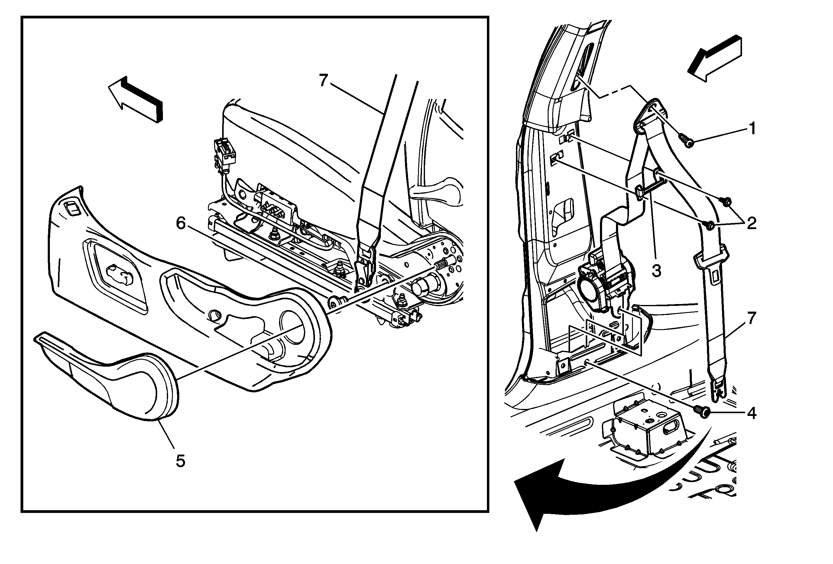 1 | Front Seat Belt Retractor D-Ring Bolt Notice: Refer to Fastener Notice in the Preface section. Tighten |