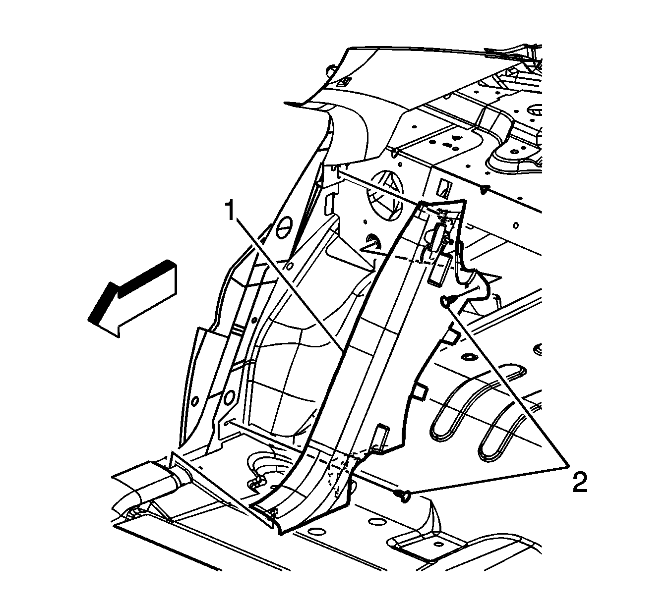 1. Remove the upper body side trim panel. Refer to Lock Pillar Upper Garnish Molding Replacement .