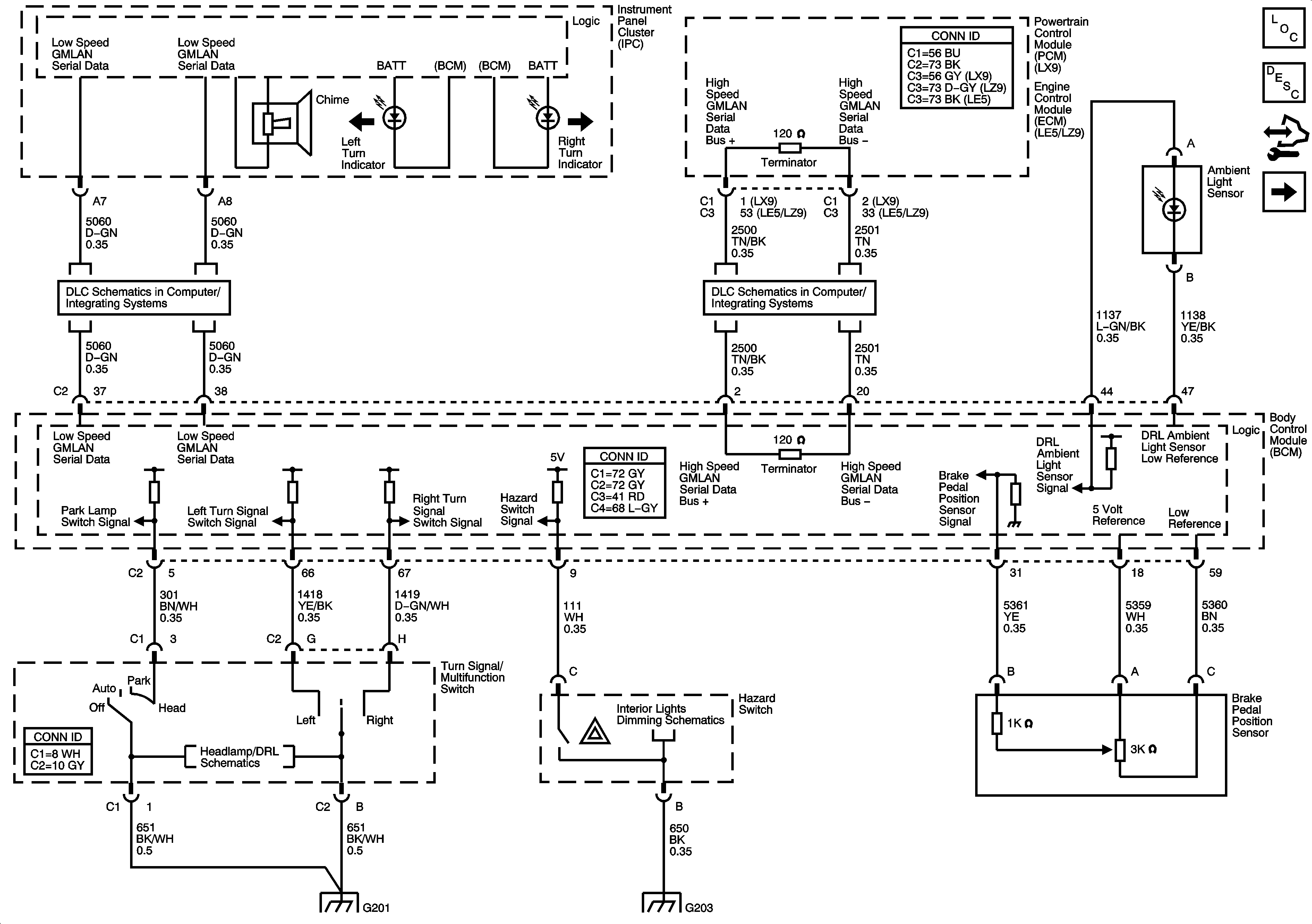 Ambient Light Sensor, Brake Pedal Position Sensor, Hazard Switch and Turn Signal/Multifunction Switch