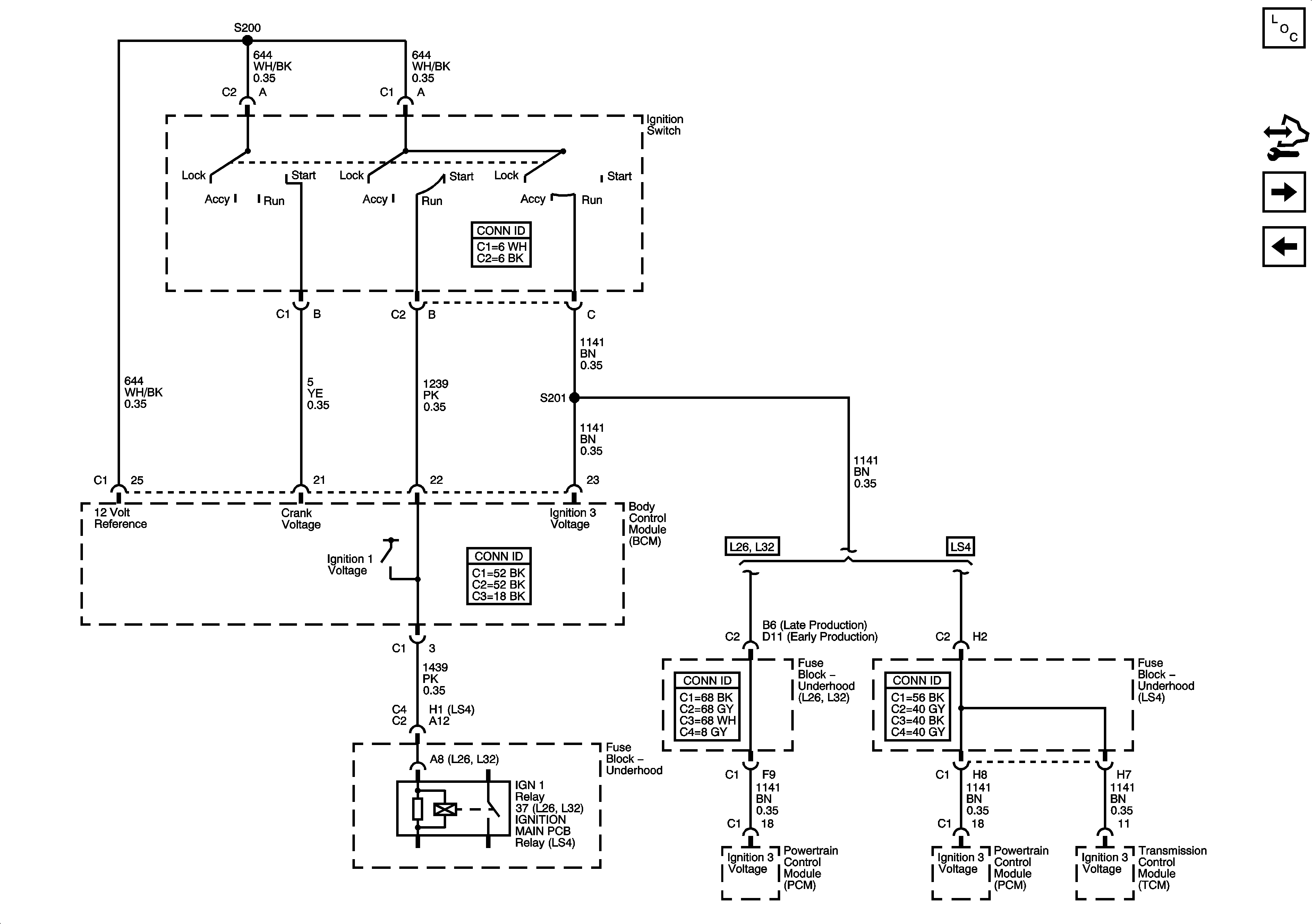 ABS, TRANS SOL, PCM, SIR, DISPLAY, CRUISE SW Fuses, and CRANK Relay (L26, L32)