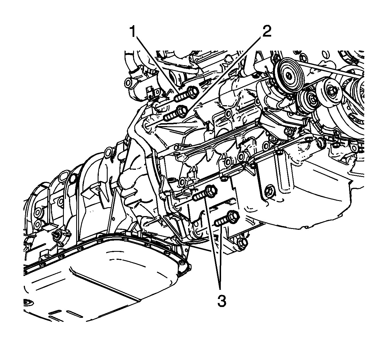 - Disconnect the wiring harness clips (1-3) from the transmission, and position the wiring harness aside.