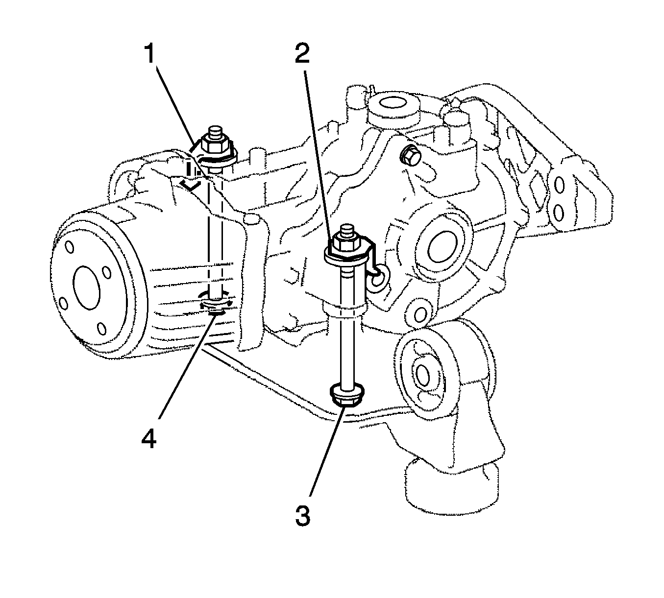 - Remove the nuts (1, 2), bolts (3, 4) and rear No. 1 differential support.
