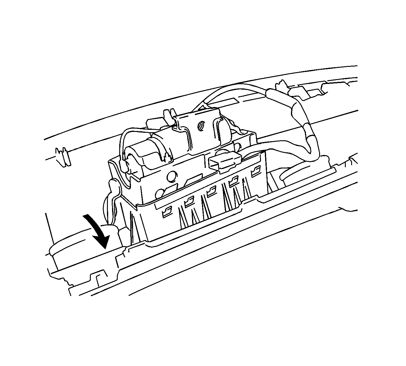 Disengage the 5 hooks and remove the inflatable restraint I/P module as shown.
