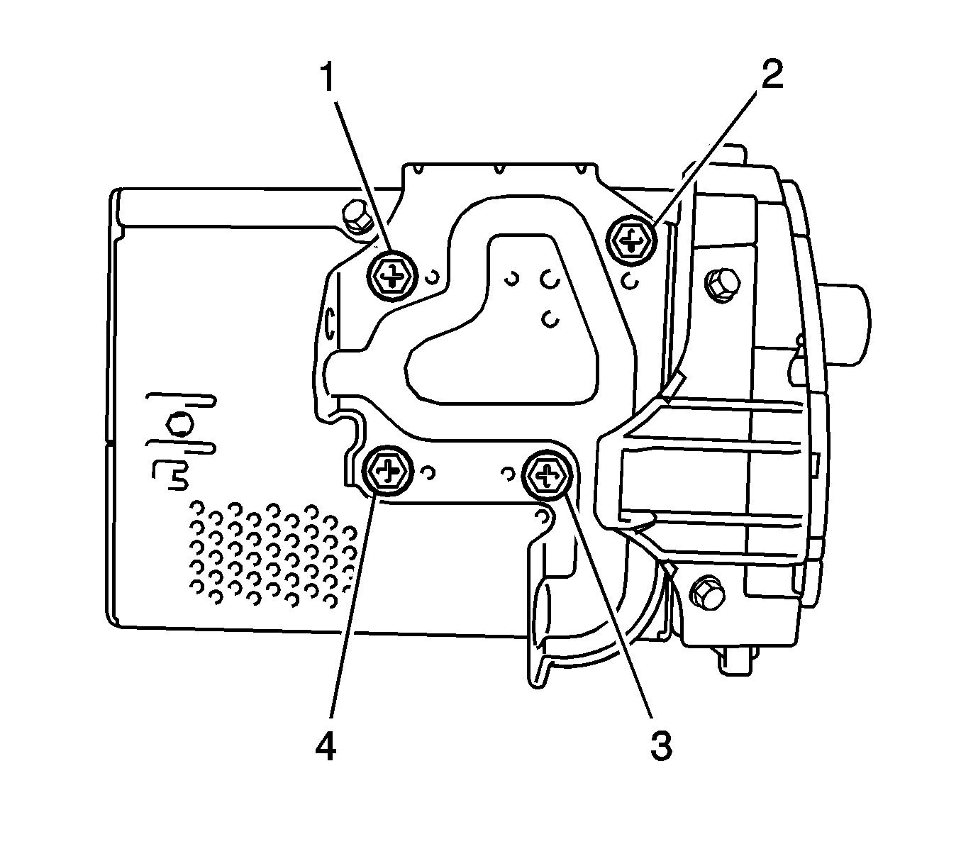 - Install the 4 bolts (1),(2),(3),(4) which secure the radio.
