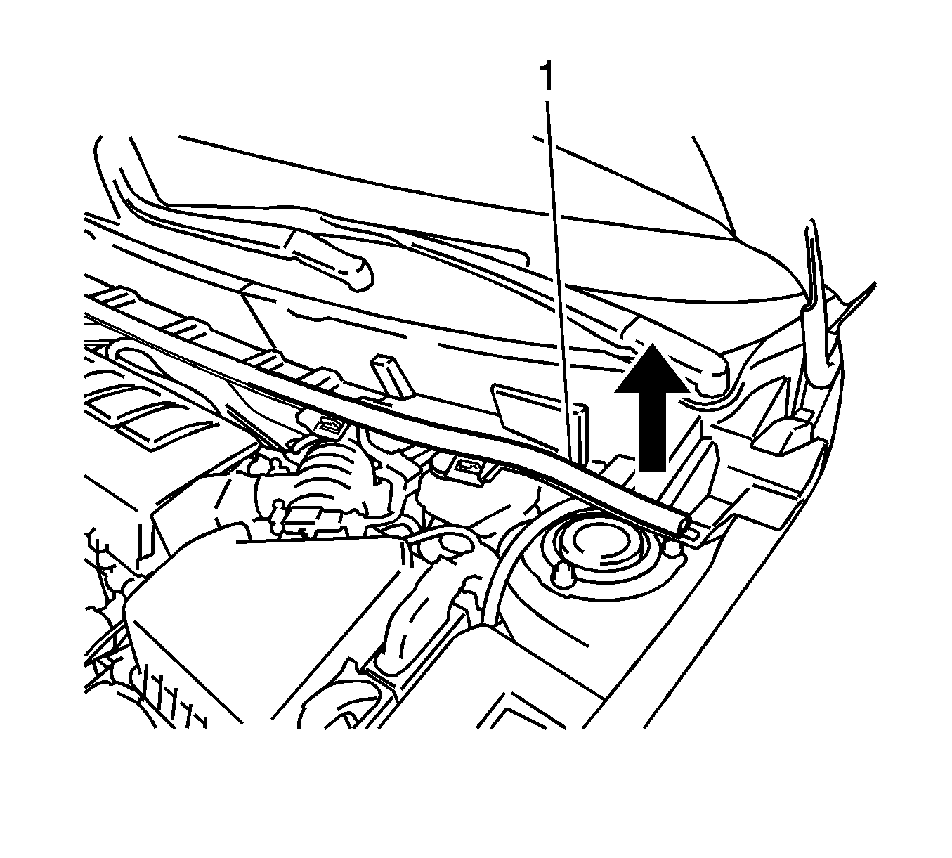 5. Slide the hood rear seal (1) to the right and up in order to disengage the clip.