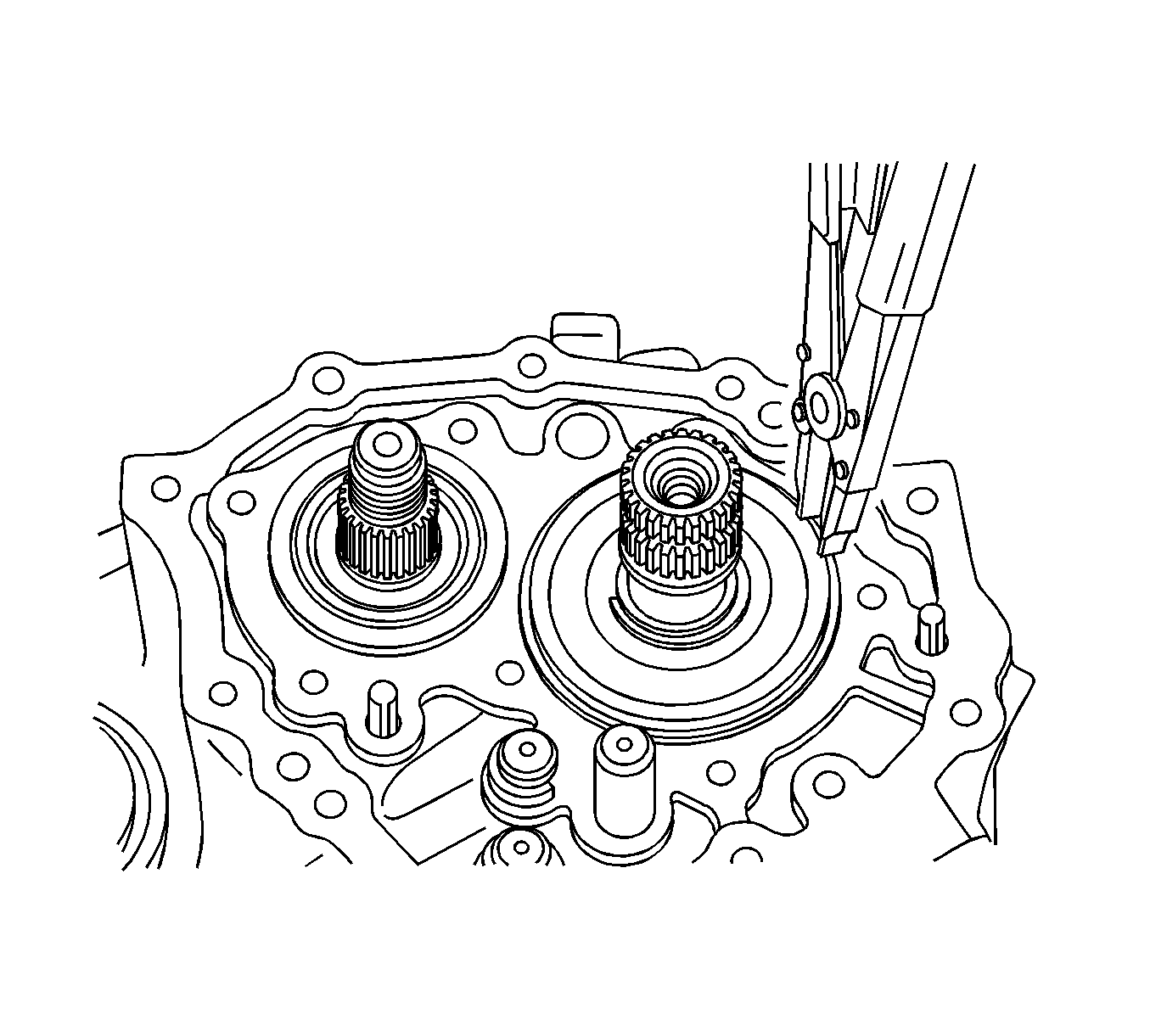 - Using a dial indicator, measure the 2nd gear thrust clearance.